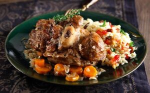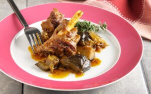 Οσομπούκο χειμωνιάτικο, με κρασί και θυμάρι.
