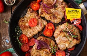 Χοιρινές μπριζόλες δικής μας παραγωγής απο τον Καρδιτσιώτικο κάμπο, λεμονάτες με πατάτες στον φούρνο.