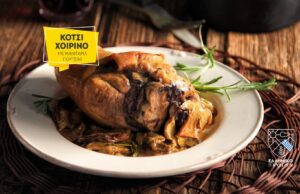 Πεντανόστιμο χοιρινό κότσι δικής μας παραγωγής, μαγειρεμένο με μανιτάρια πορτσίνι.