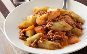 Πράσα στην κατσαρόλα με κιμά.