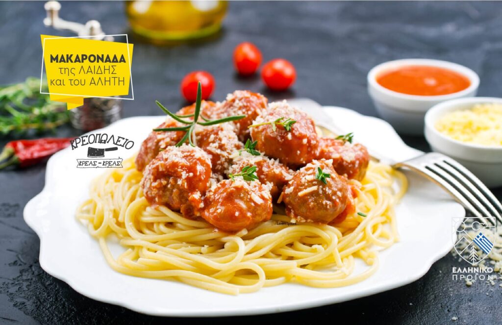Πληθωρική ιταλοαμερικανική μακαρονάδα που… έφερε κοντά τους ήρωες της ταινίας κινούμενων σχεδίων της Disney. Οι σταφίδες και τα κουκουνάρια στο μείγμα του κιμά απο το κρεοπωλείο Κρέας-Κρέας, δίνουν έναν ανατολίτικο τόνο στα κεφτεδάκια.