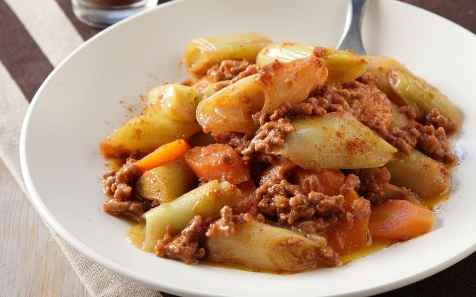 Πράσα στην κατσαρόλα με κιμά.